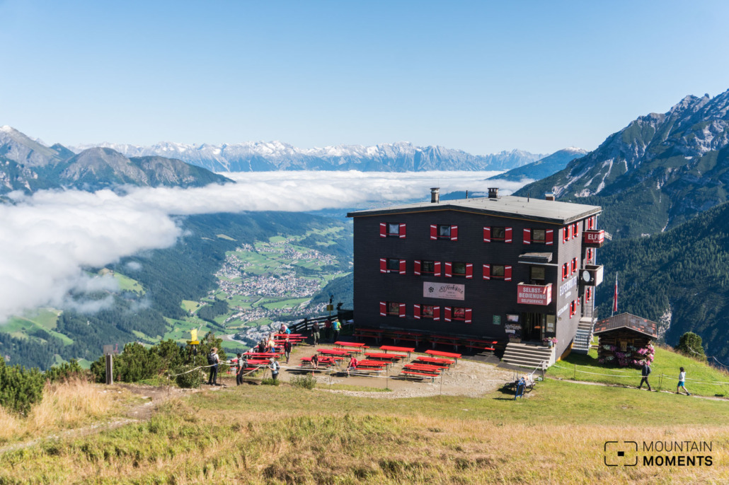 Die Überschreitung beginnt an der Westseite des Elfers und führt in mehreren Etappen über den aussichtsreichen Grat zum Gipfel. Was diese Route so besonders macht, sind die ständig wechselnden Perspektiven auf die umgebende Bergwelt. Während man klettert, eröffnen sich immer neue Blickwinkel auf die Stubaier Gletscher, das Wipptal und bei klarem Wetter sogar bis zu den Dolomiten.