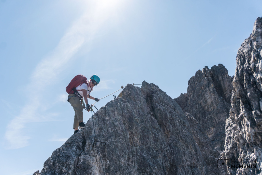 Im Kontrast zur intensiven Nordwand-Route bietet die Überschreitung ein völlig anderes, aber nicht weniger beeindruckendes Klettersteig-Erlebnis. Mit einer Schwierigkeit von B/C ist sie etwas moderater, aber die Länge und die spektakulären Ausblicke machen sie zu einem unvergesslichen Erlebnis.