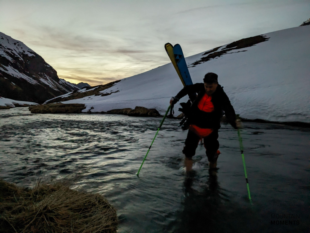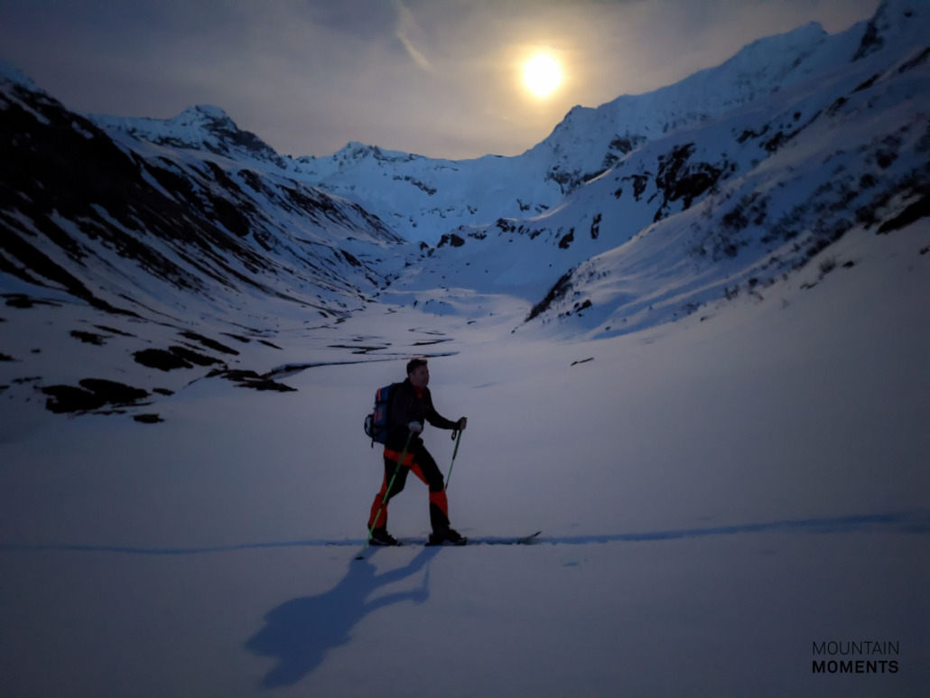 Natürlich ist da die Gefahr: Lawinen, versteckte Felsen, Geltscherspalten – die Risiken sind real. Ich fahre ungern ohne erfahrene Partner und ohne gründliche Planung. Aber selbst mit aller Vorbereitung bleibt ein Restrisiko, das sich nicht wegplanen lässt.