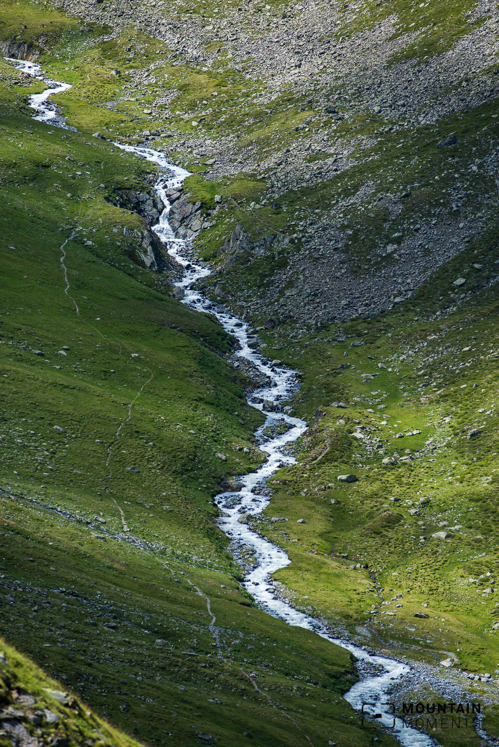 Hier wandert man genüsslich in bis zu 10 Tagesetappen von Hütte zu Hütte, genießt die einsame Bergwelt und kommt zur Ruhe. Man schaut dem Wasser in den natürlichen Gebirgsbächen beim fließen zu, hört den Wind um die mitunter schrofen Bergflanken und Murmeltiere pfeifen. Hier und dort muht eine Kuh oder es wiehert ein Pferd. Vielleicht begegnet man in der Hauptferienzeit einer Handvoll anderer Wanderer. Das war es auch schon an Aufregung. Und genau das ist es was die Sellrainer Hüttenrunde zu einer fotografischen Bergwanderung so spannend macht. Es gibt nicht den „Money-Shot“. kein Wahrzeichen, das alle von genau der gleichen Stelle aus fotografisch festhalten, 2 Minuten staunen und weiterreisen. Hier finden wir Ruhe, Stressfreiheit und Natur und genug Zeit uns damit zu beschäftigen oder einfach die Gedanken schweifen zu lassen.